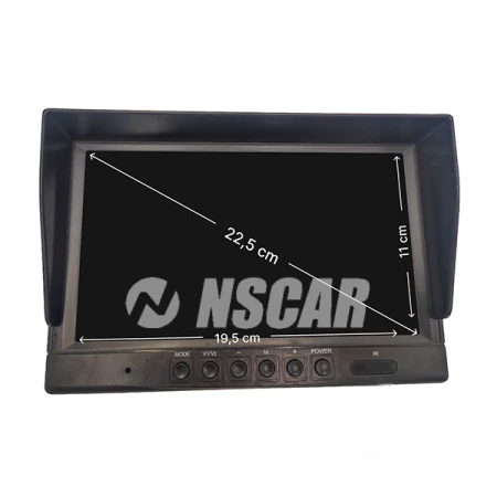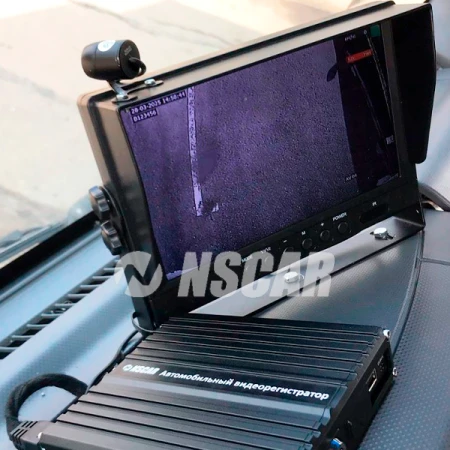 Монитор NSCAR 9.0 – это 9-дюймовый дисплей, предназначенный для использования в системах видеонаблюдения на транспорте. Он обеспечивает четкое отображение видео с камер благодаря разрешению 1024×600 и яркости 400 кд/м².