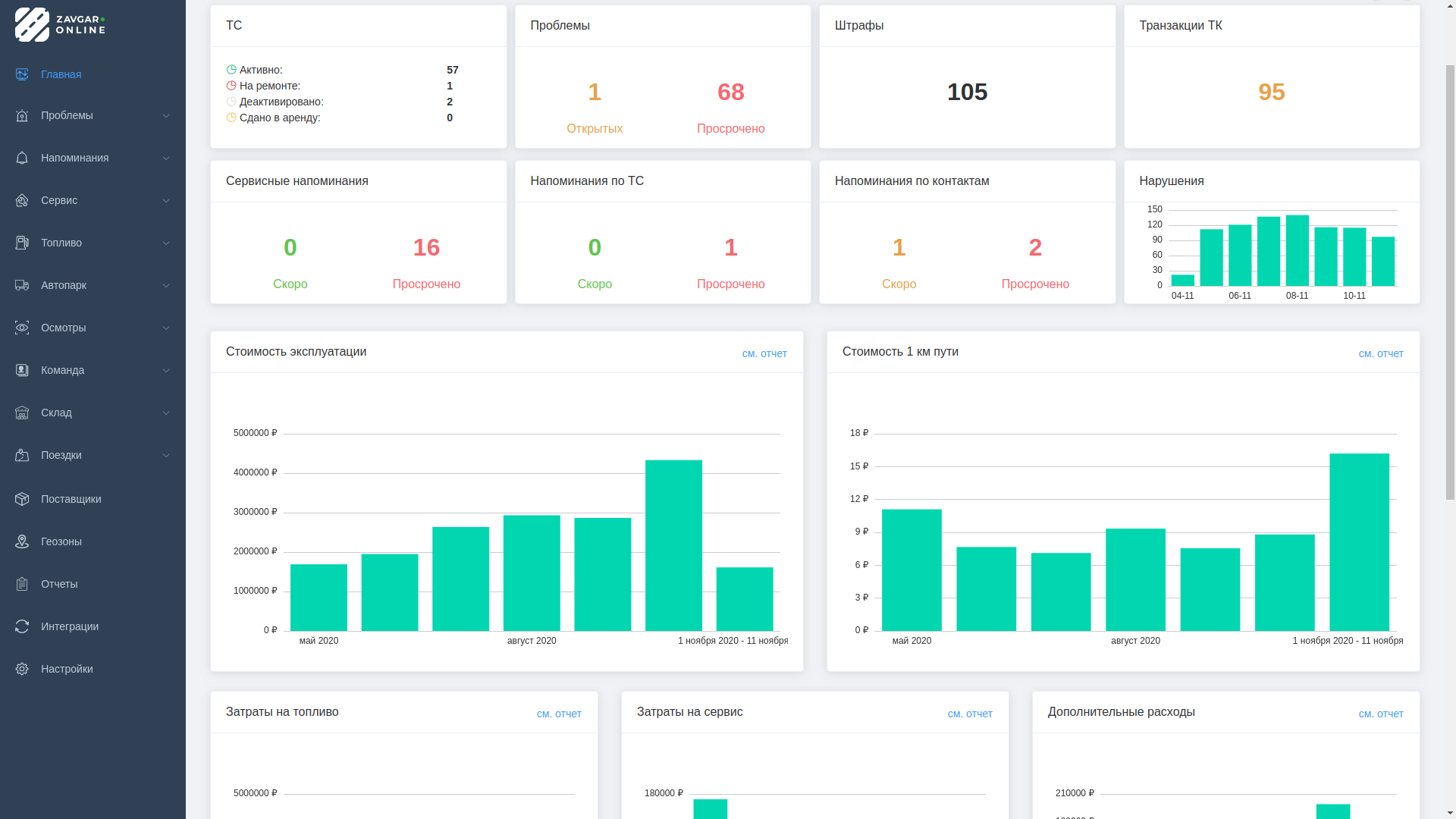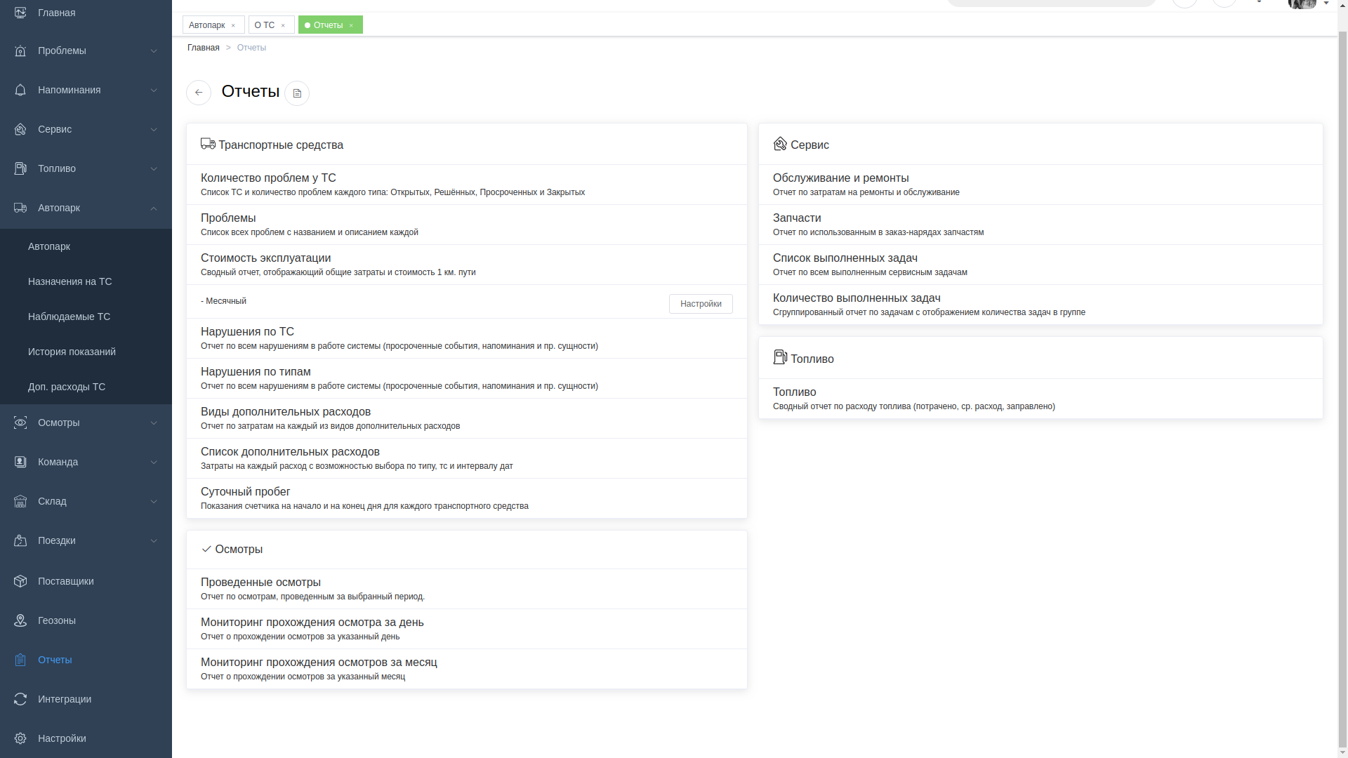 Интеграции (ГЛОНАСС, топливные карты, 1С и